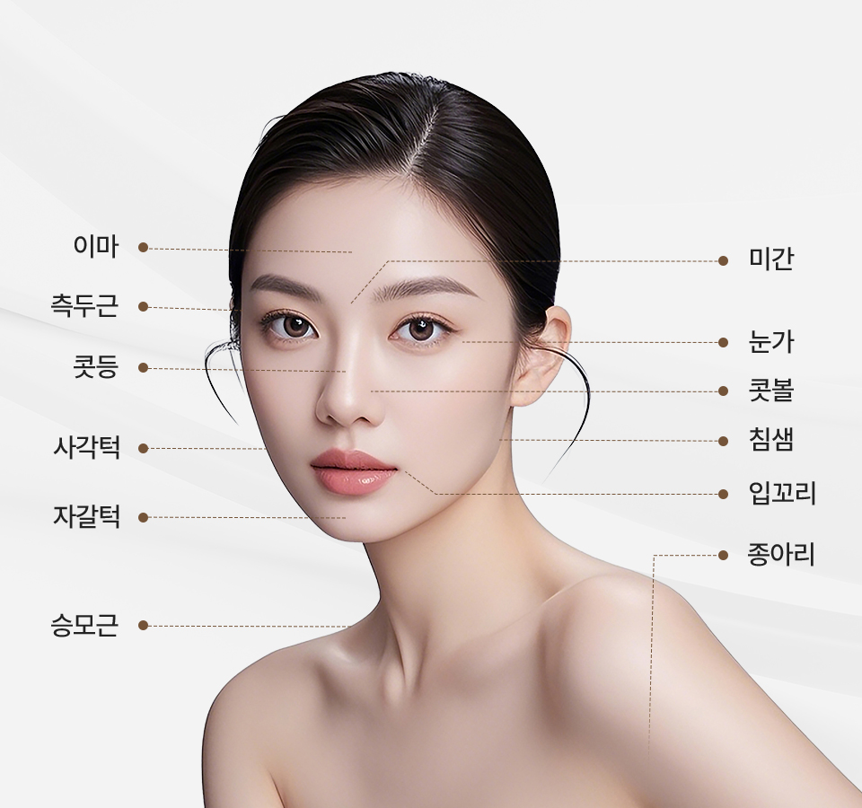 사각턱, 미간, 눈가 등 다양한 부위의 자연스러운 주름 개선 효과가 있습니다.