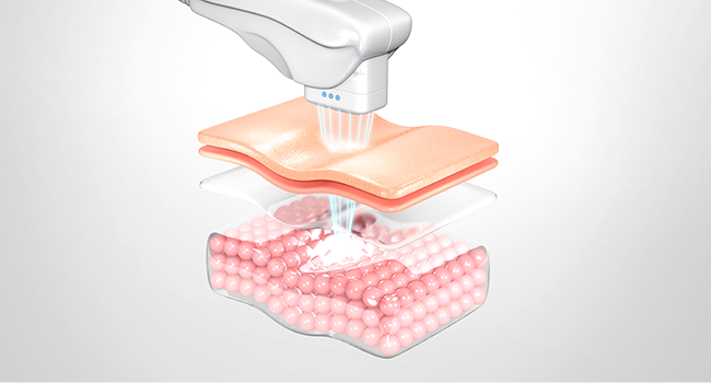 고강도 집속 초음파를 피부 표면 아래 약 3~4.5mm 깊이의
